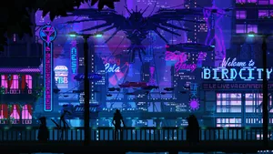 ![Explore The Neon-lit Cyberpunk City In This Pixel Art! Wallpaper]()  Explore The Neon-lit Cyberpunk City In This Pixel Art! Wallpaper