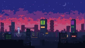 ![Cyberpunk Purple City Skies Pixel Art Wallpaper]()  Cyberpunk Purple City Skies Pixel Art Wallpaper