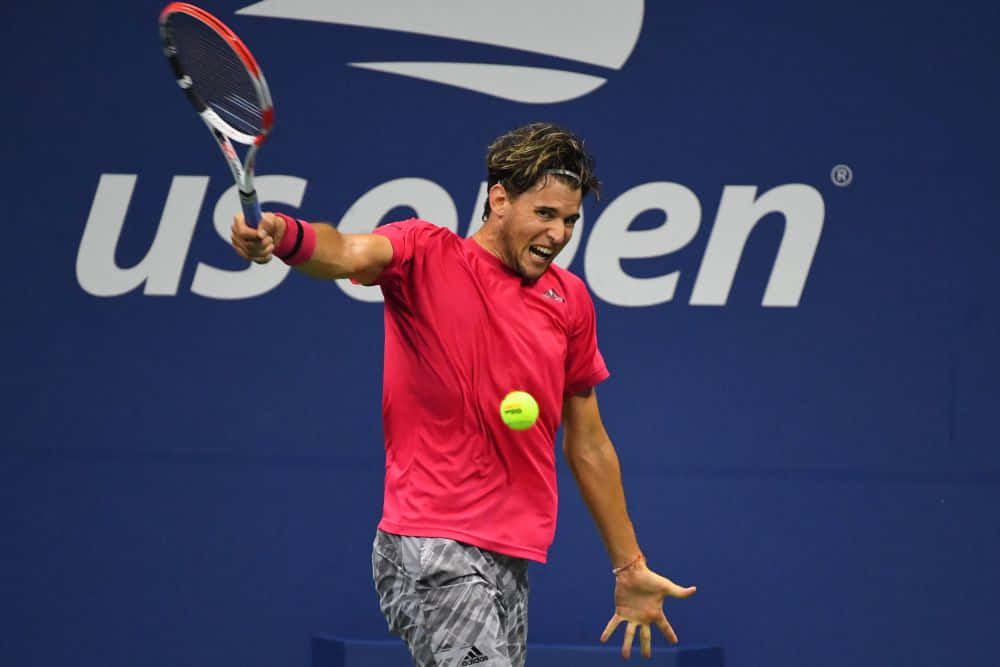 Dominic Thiem Intense Forehandat U S Open Wallpaper -