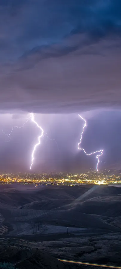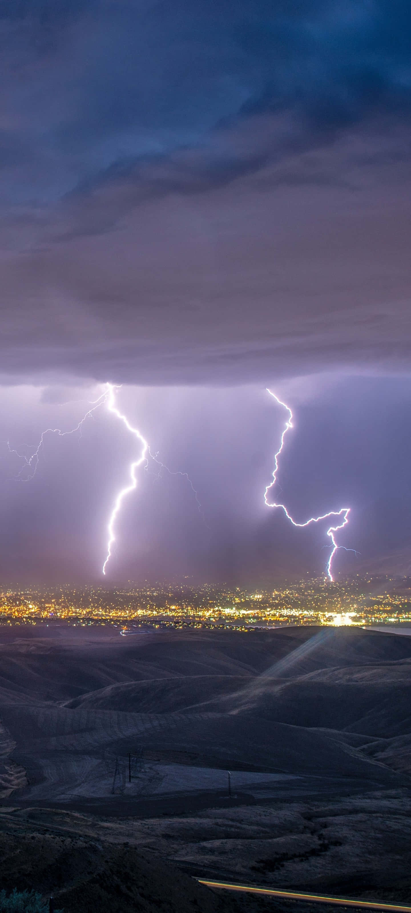Purple Aesthetic Lightning City Mobile Wallpaper -
