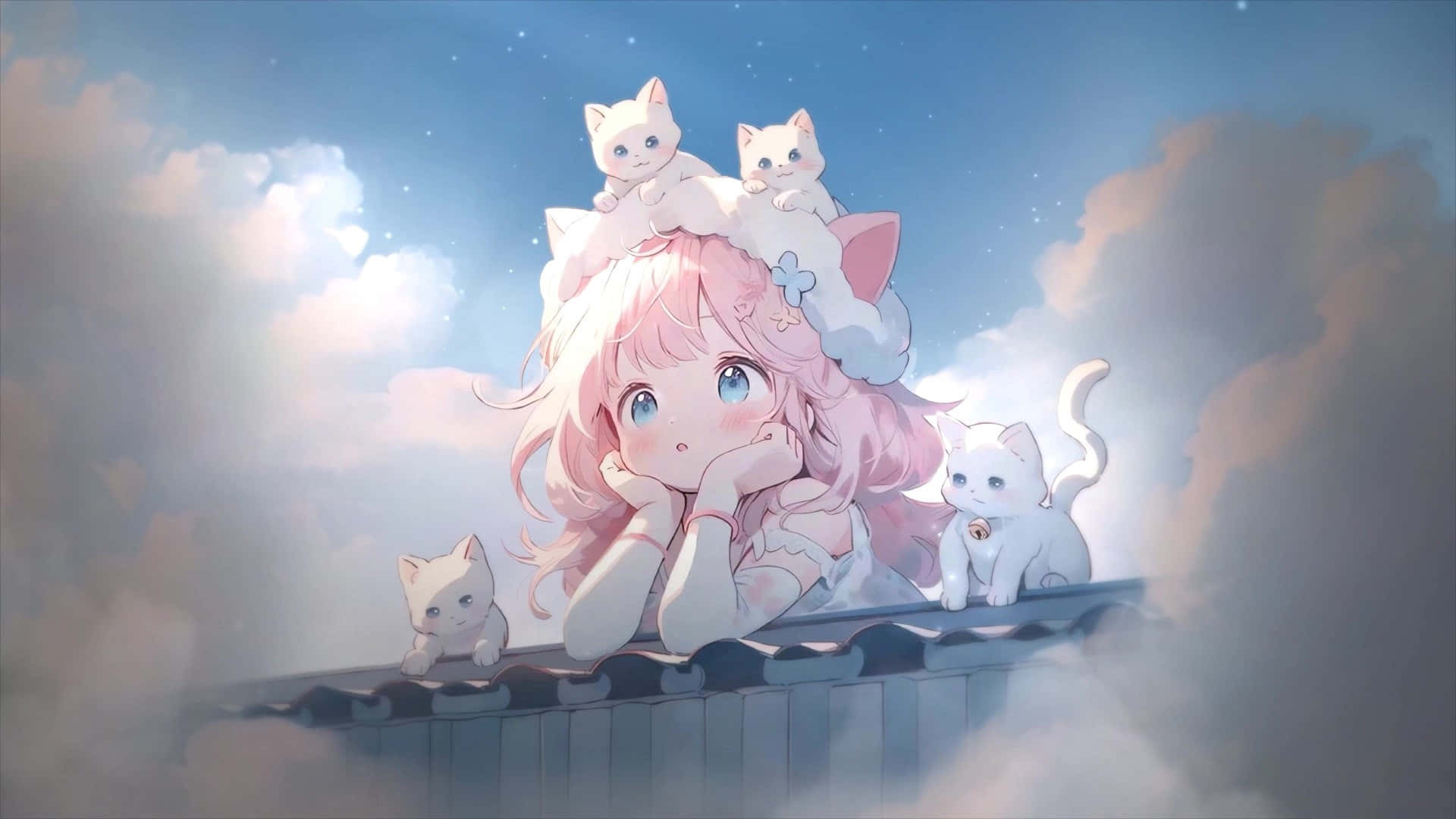 Related Dreamy Girland White Kittens Art Wallpapers
