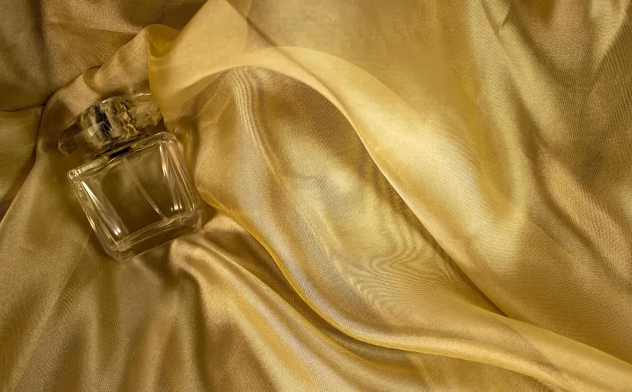 A Gold Satin Fabric Is Laying On A Table Wallpaper -