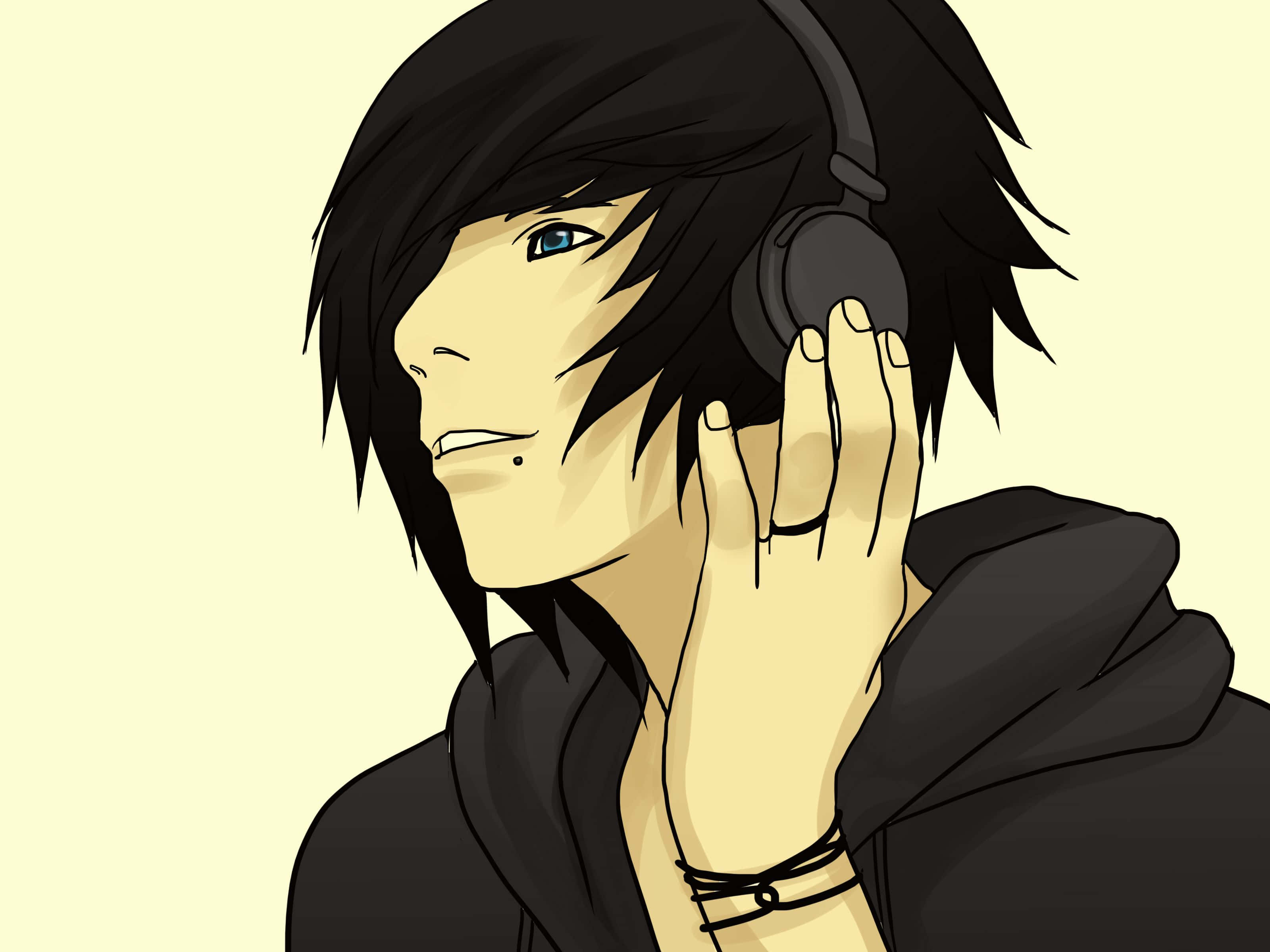An Edgy Anime Boy Wearing A Black Hoodie And Headphones Wallpaper -