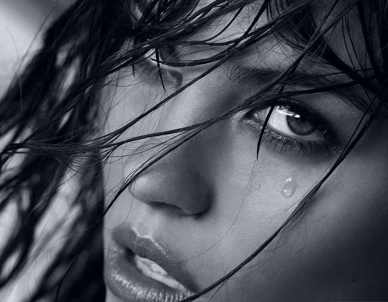 “emotional Release: Profile Of A Crying Woman” Wallpaper
