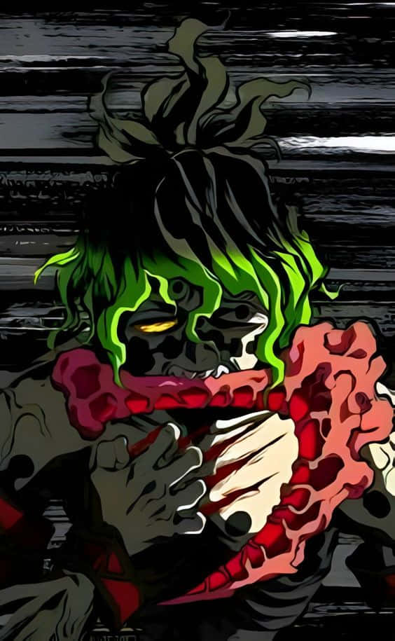 A Character With Green Hair And Green Eyes Wallpaper -