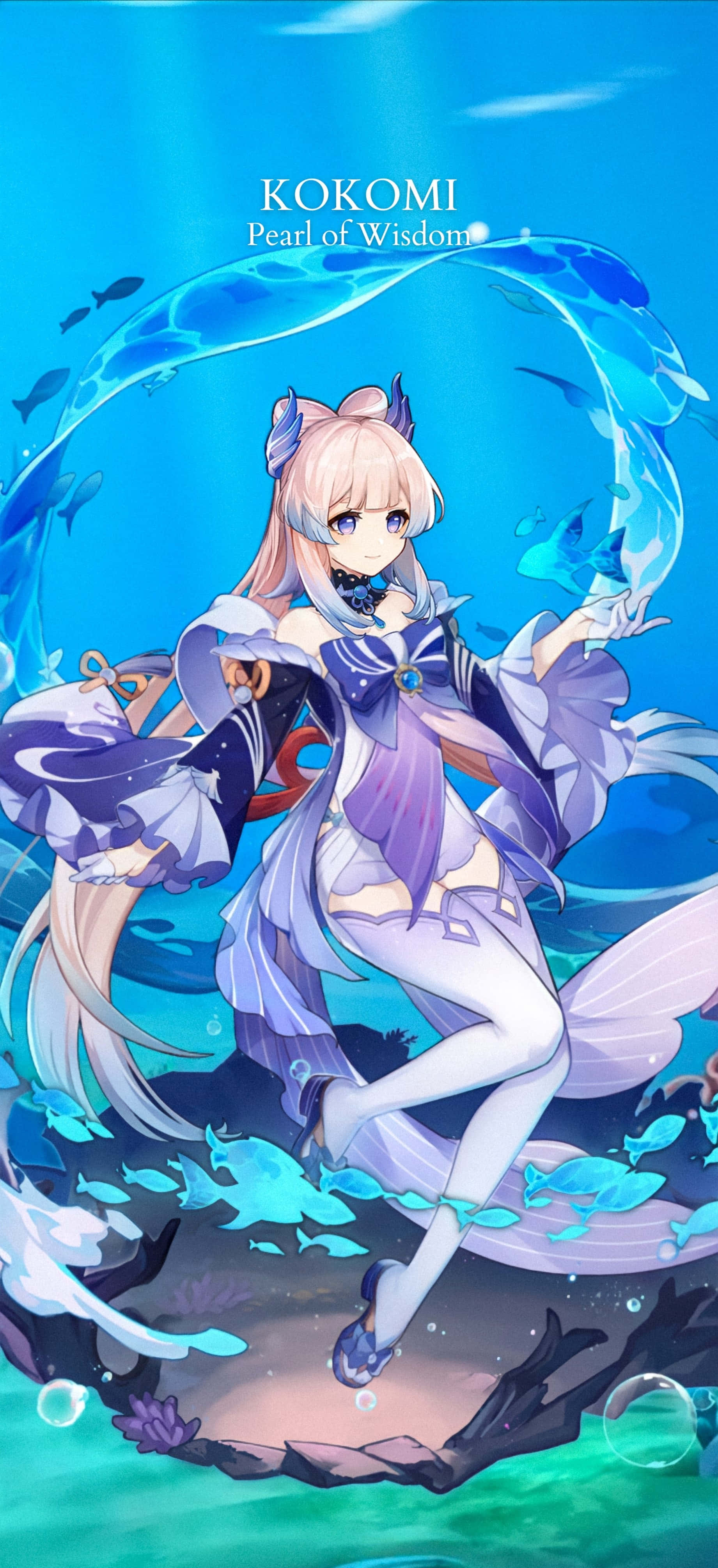 Caption: Graceful Kokomi From The Underwater World Of Genshin Impact Wallpaper -