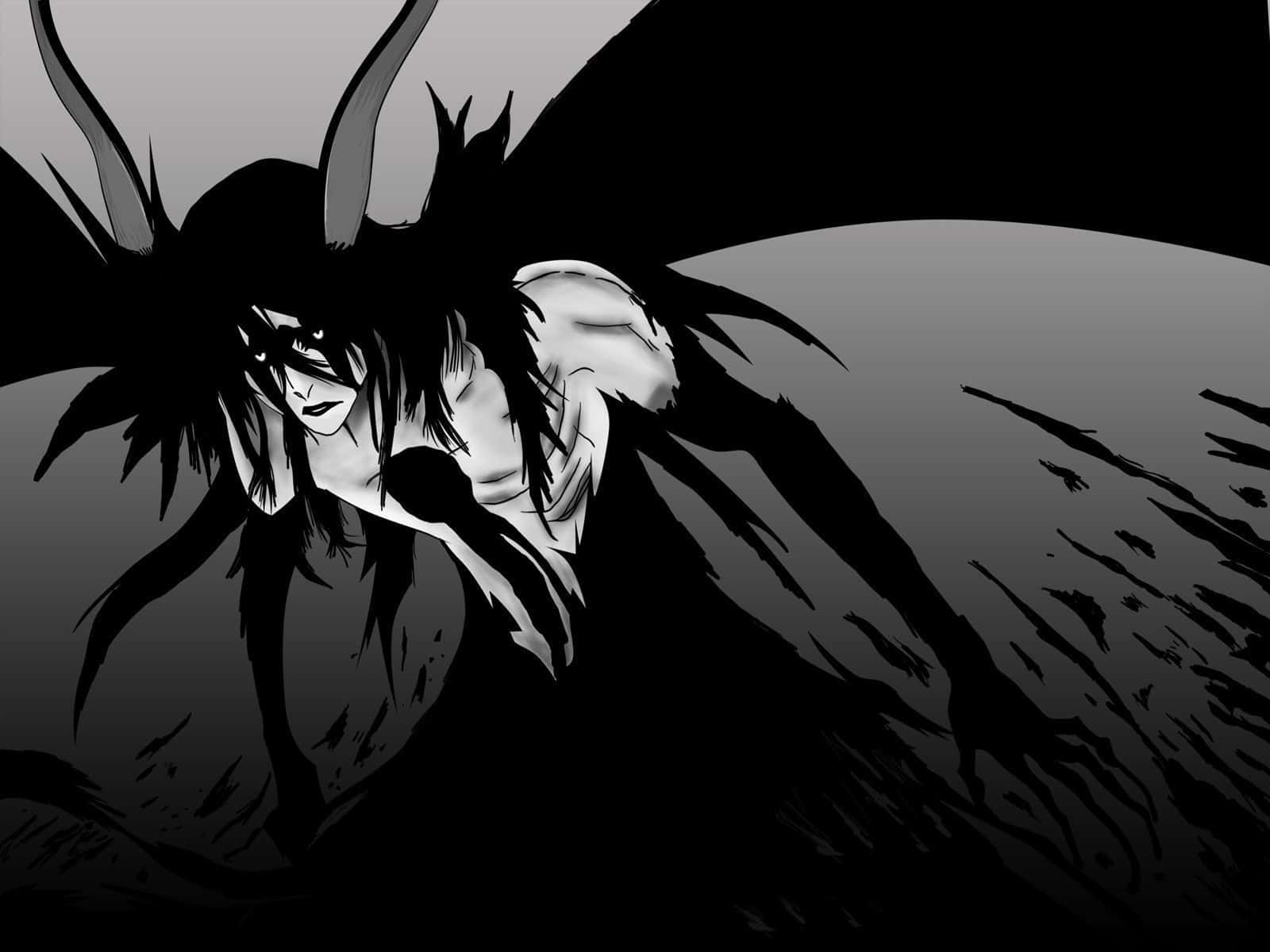 A Black And White Image Of A Demon With A Sword Wallpaper -