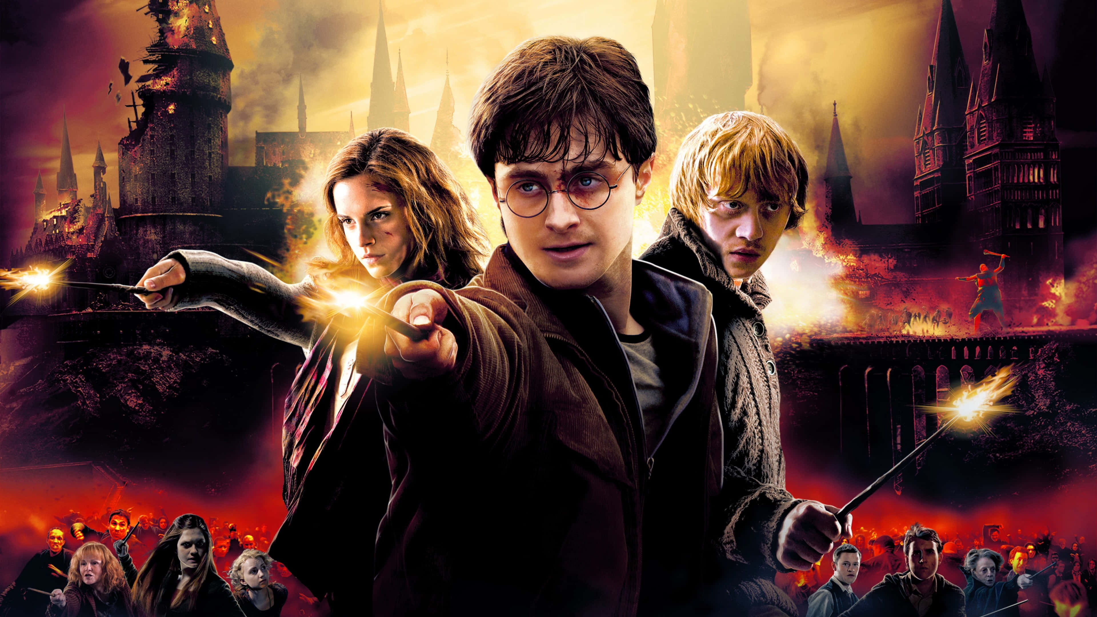 Hermione Granger, Ron Weasley, And Harry Potter, Together Known As The Golden Trio Wallpaper -
