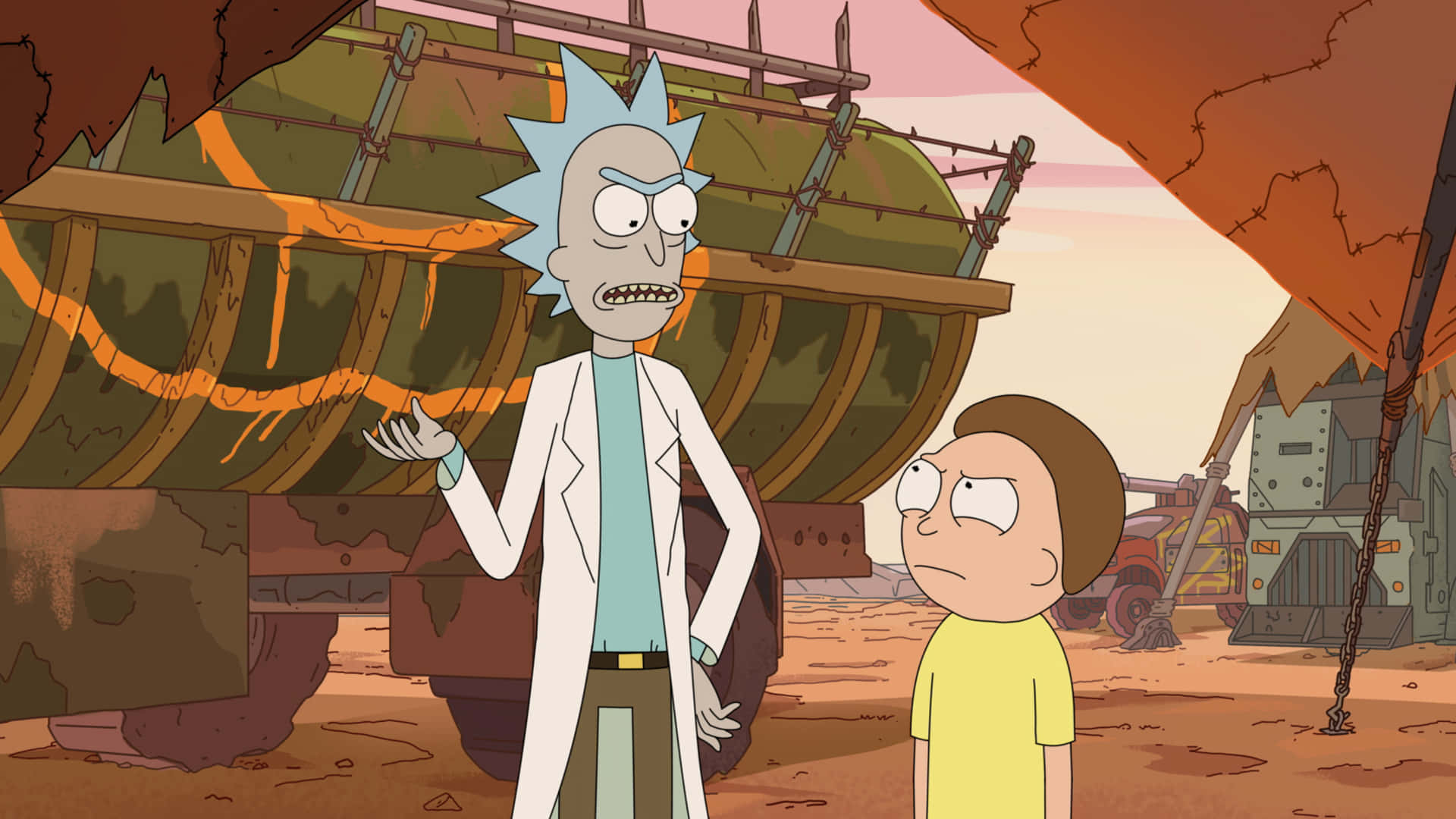 Two Adventurous Fuel-heads, Rick And Morty, On A Mission. Wallpaper -