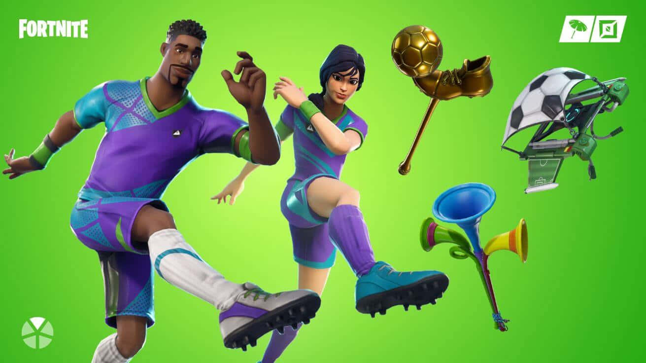 Fortnite - A Soccer Game With A Green Background Wallpaper