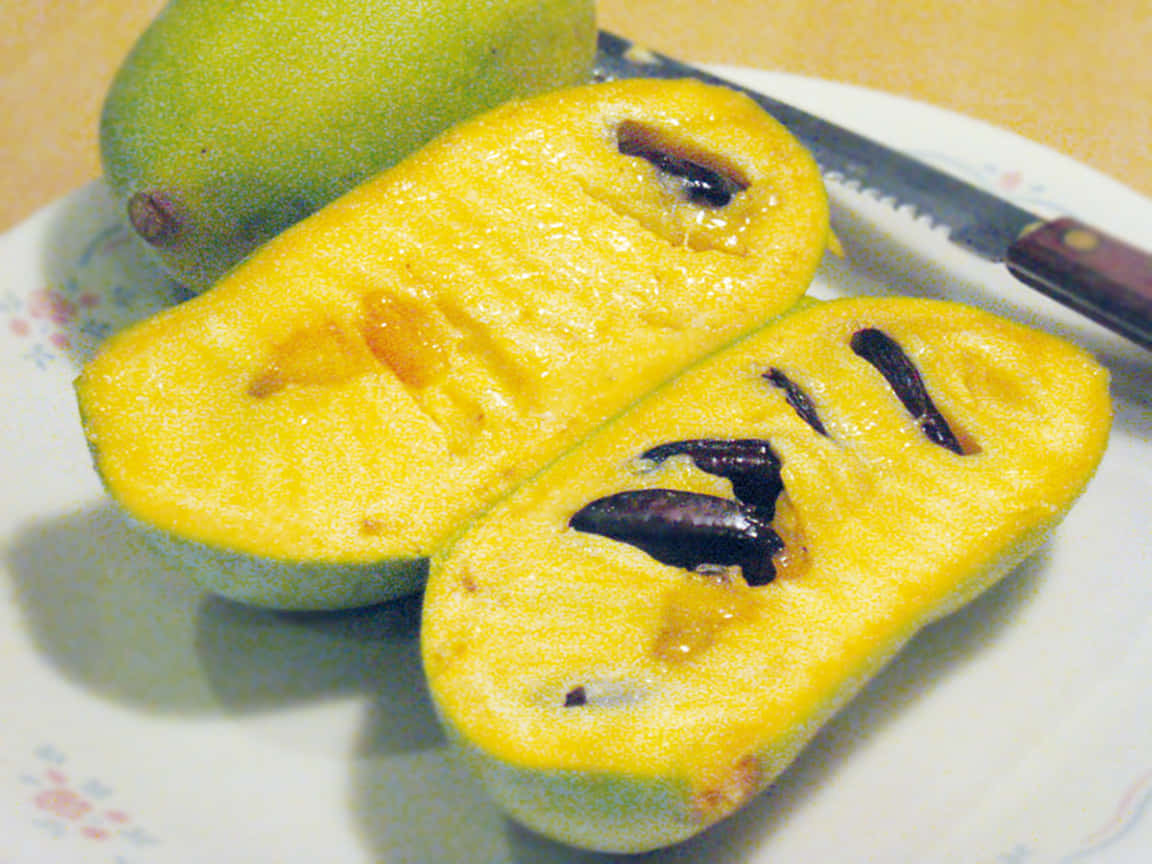 Caption: Vibrant Pawpaw Fruit With Black Seeds Wallpaper -