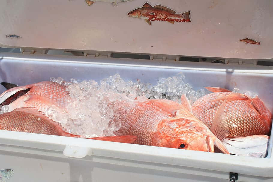 Red Snapperon Icewith Plastic Lids Wallpaper -