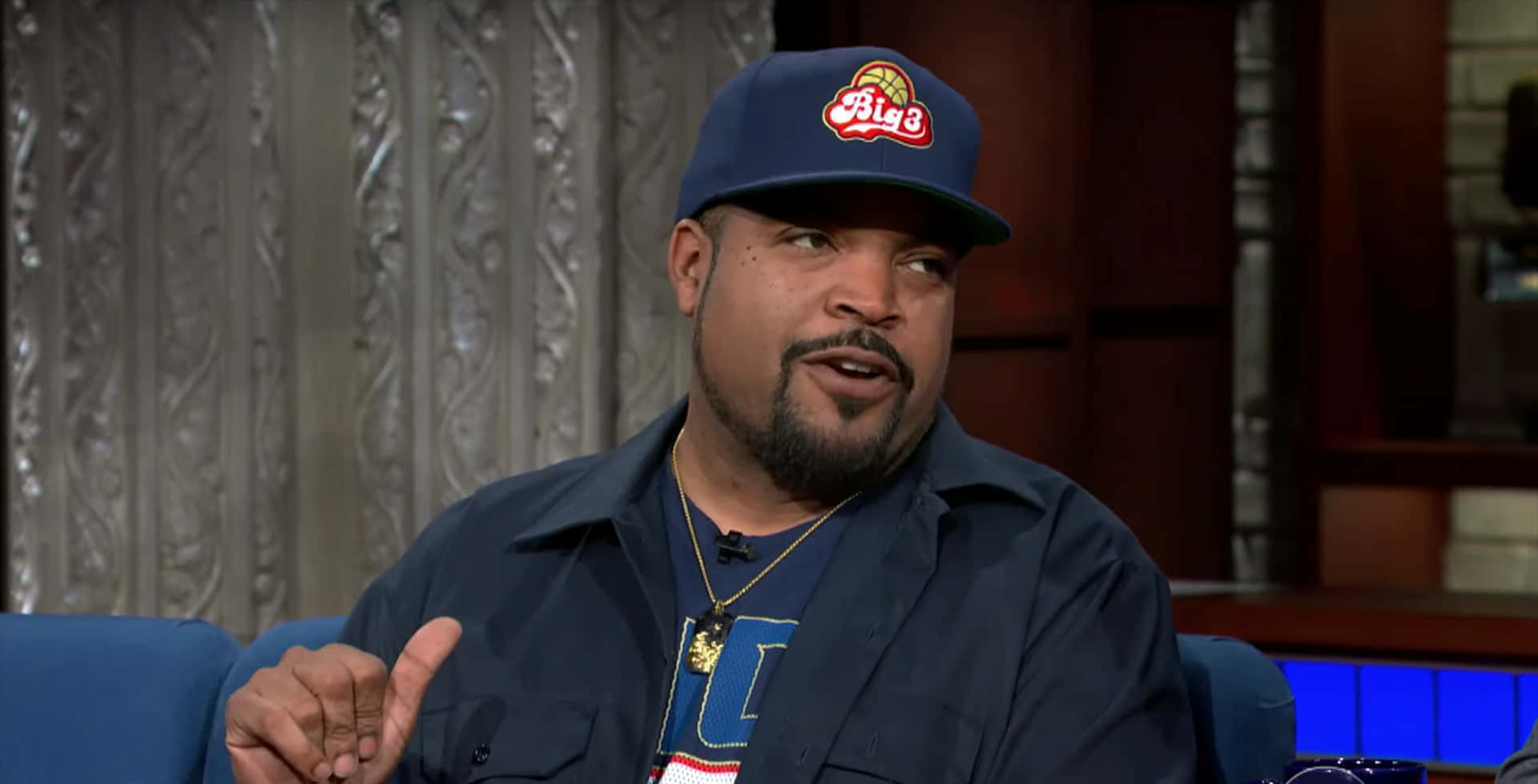 A Man In A Hat Is Talking To Another Man Wallpaper -