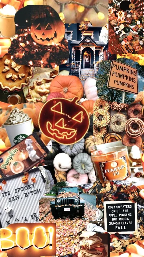 Fall Halloween Iphone Spooky Season Collage Wallpaper -