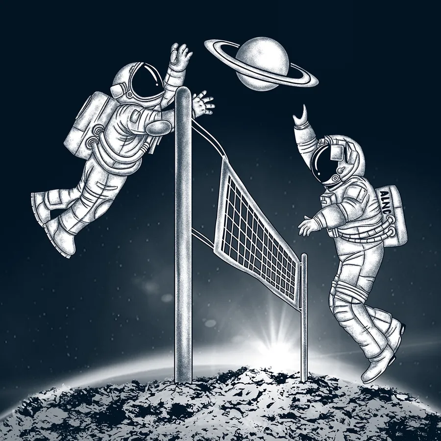 Cute Silhouette Man Playing Moon As Volleyball Wallpaper -