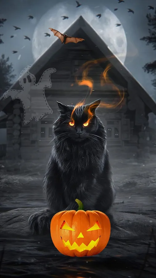 Get Ready To Purr-fectly Frighten Your Friends This Halloween With This Spooky Cat! Wallpaper -