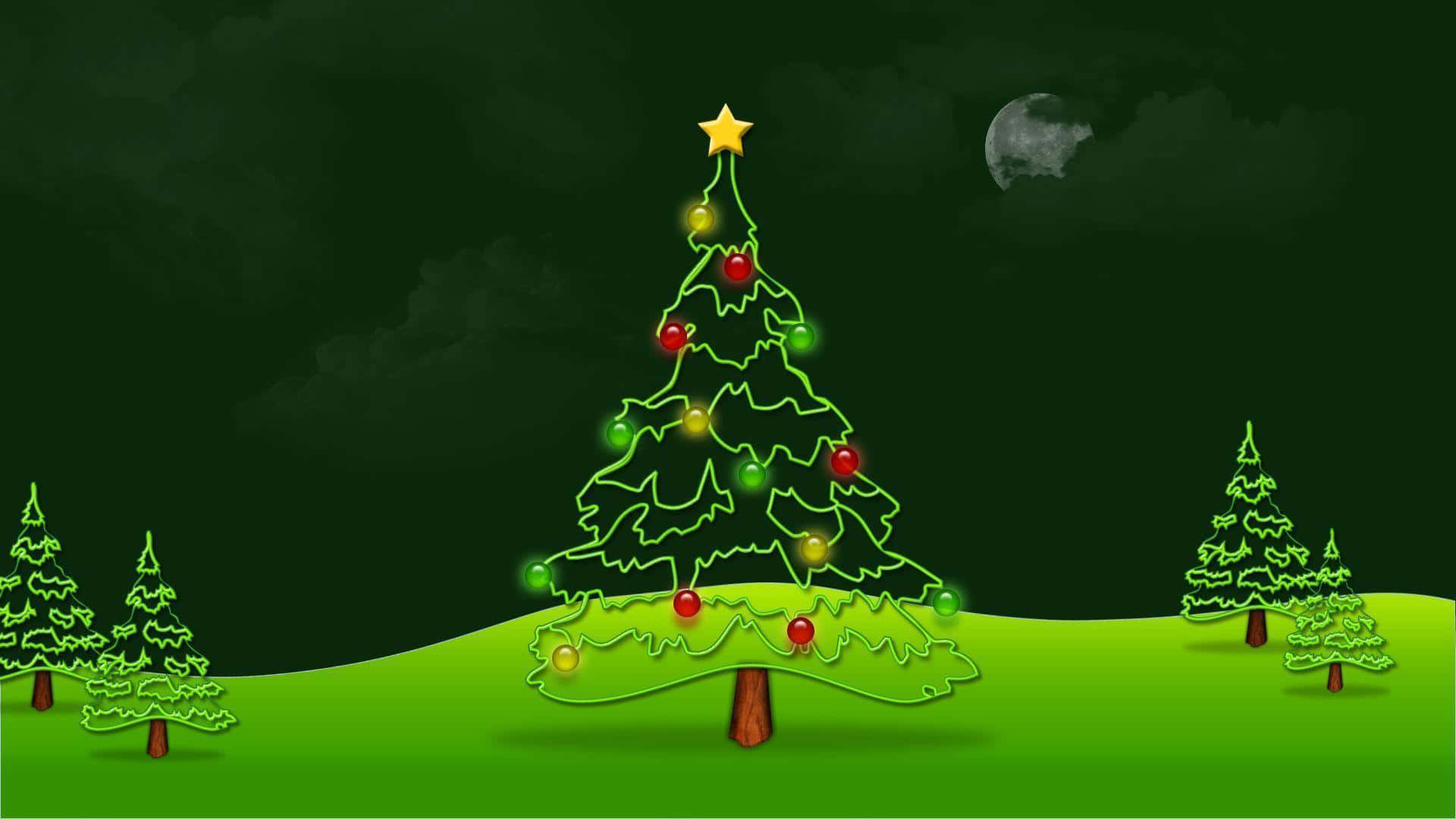 Christmas Tree On Green Background Wallpaper -