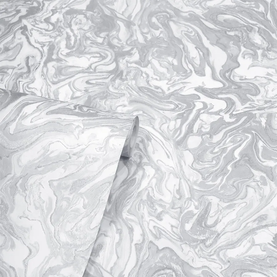 Grey Marble Paper Roll Wallpaper -