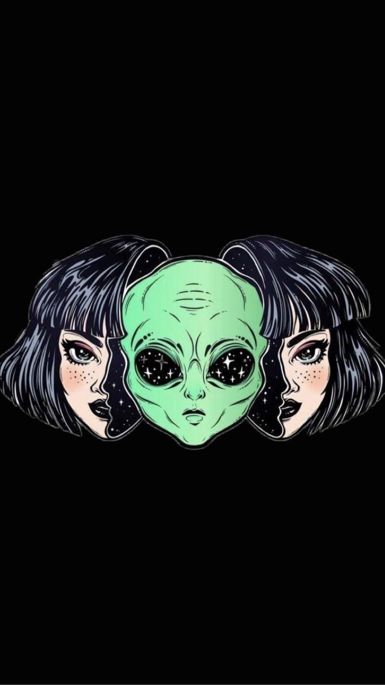Grunge Anime Girl And Alien Wallpaper