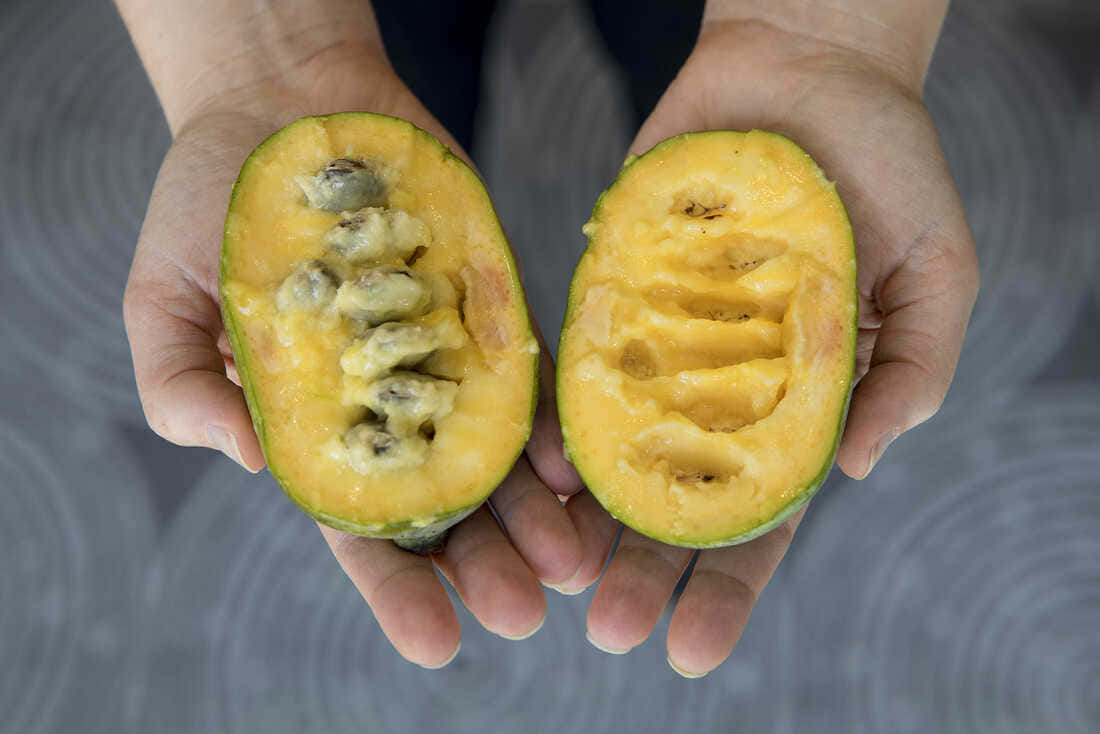 Pawpaw Fruit With Its Dry Seeds Wallpaper -