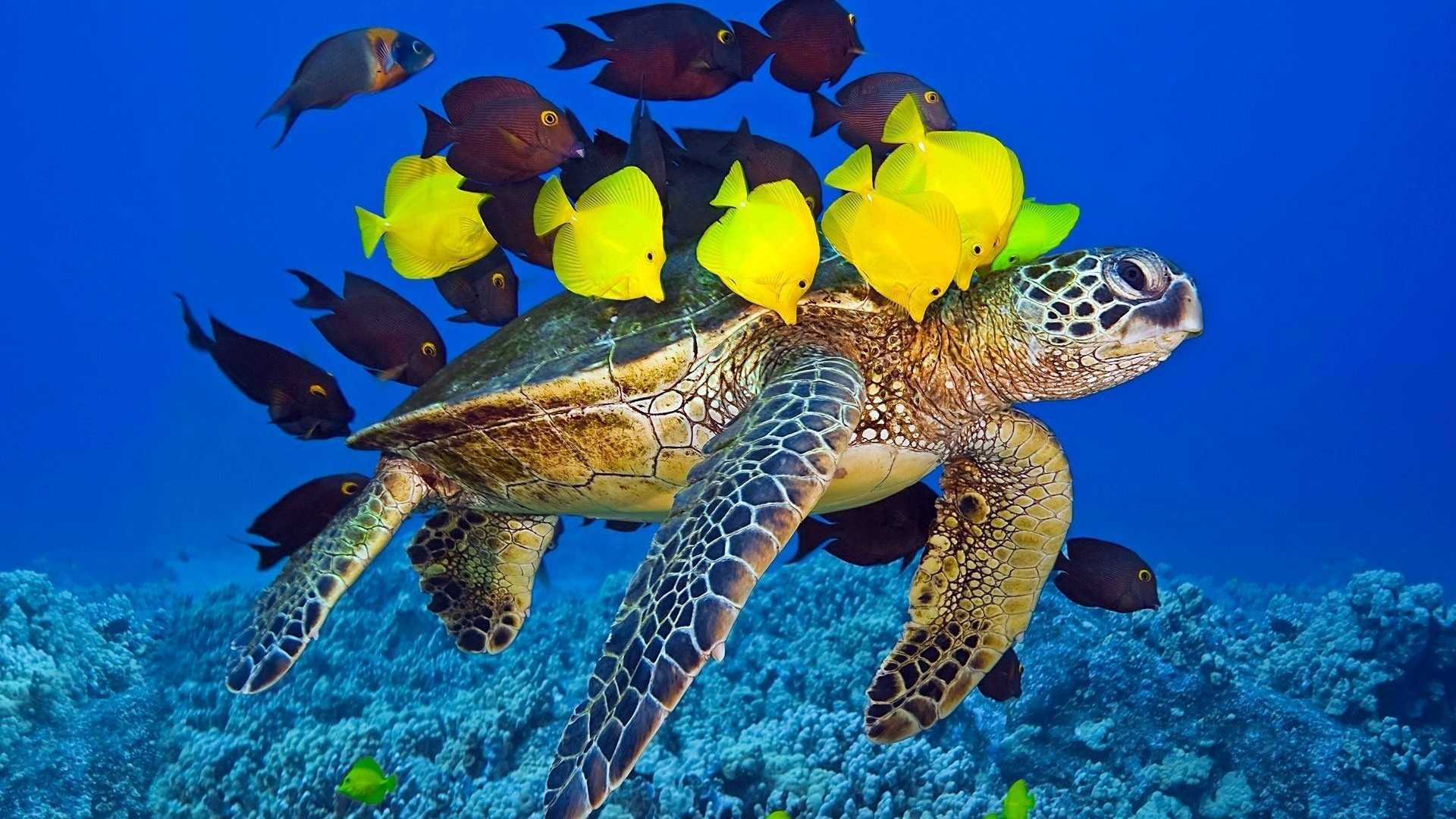 Related Hd Fishes Over A Sea Turtle Wallpapers