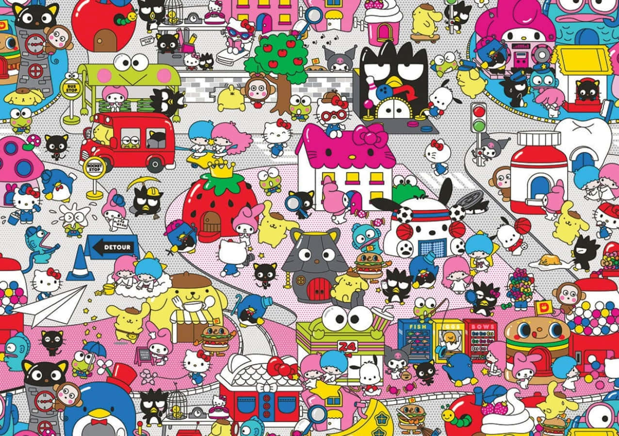 Colorful Adventure With Hello Kitty And Friends Wallpaper -