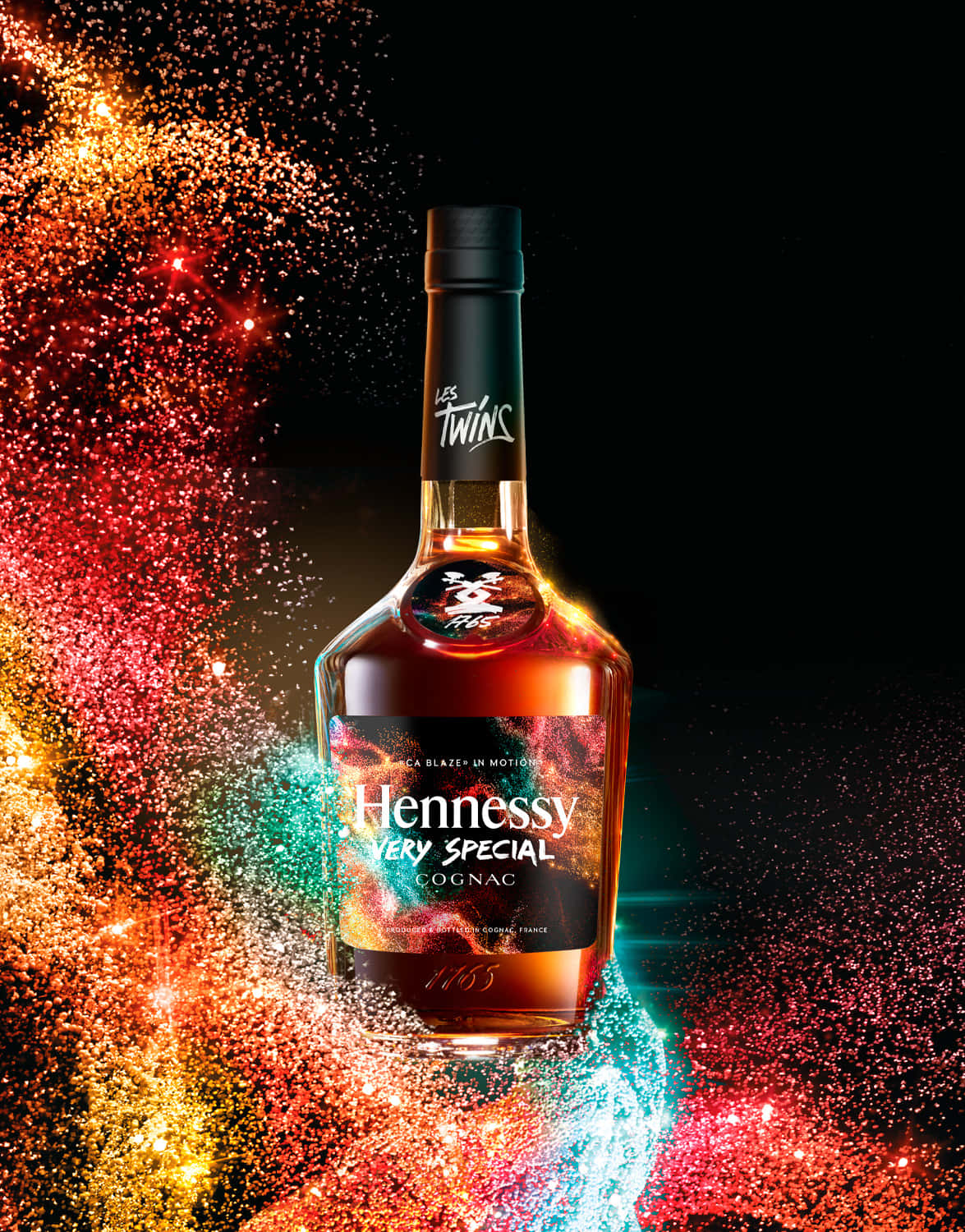 Hennessy Bottle With Colorful Droplets -