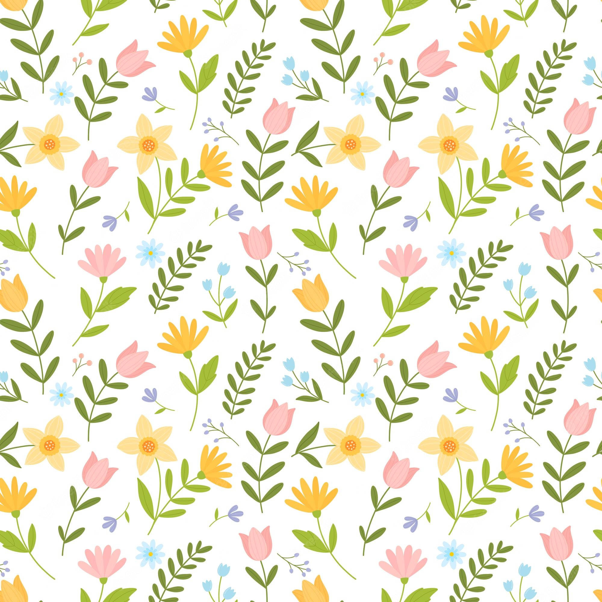 Cute Spring Phone Flowers, Leaves Pattern Wallpaper -