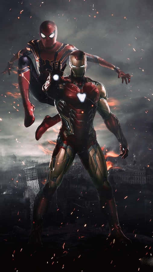 “heroes Unite! Spider Man And Iron Man Save The Day!” Wallpaper