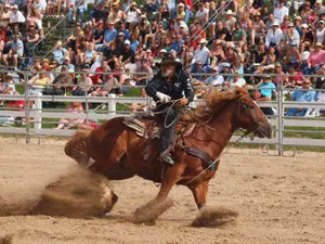 Horse Performing A Tight Turn During A Barrel Racing Event Wallpaper