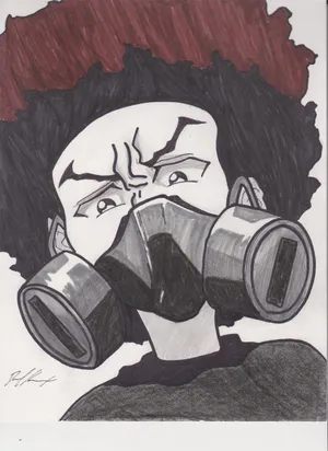 Huey Freeman Wearing Gas Mask -