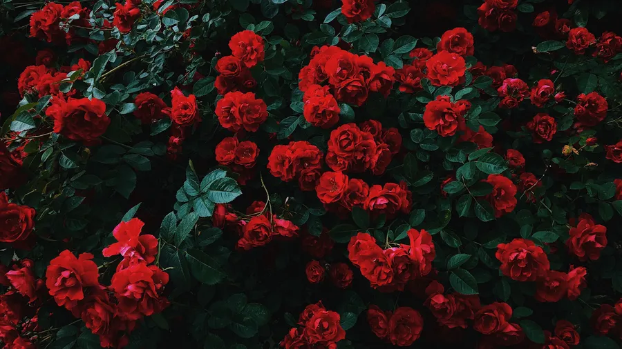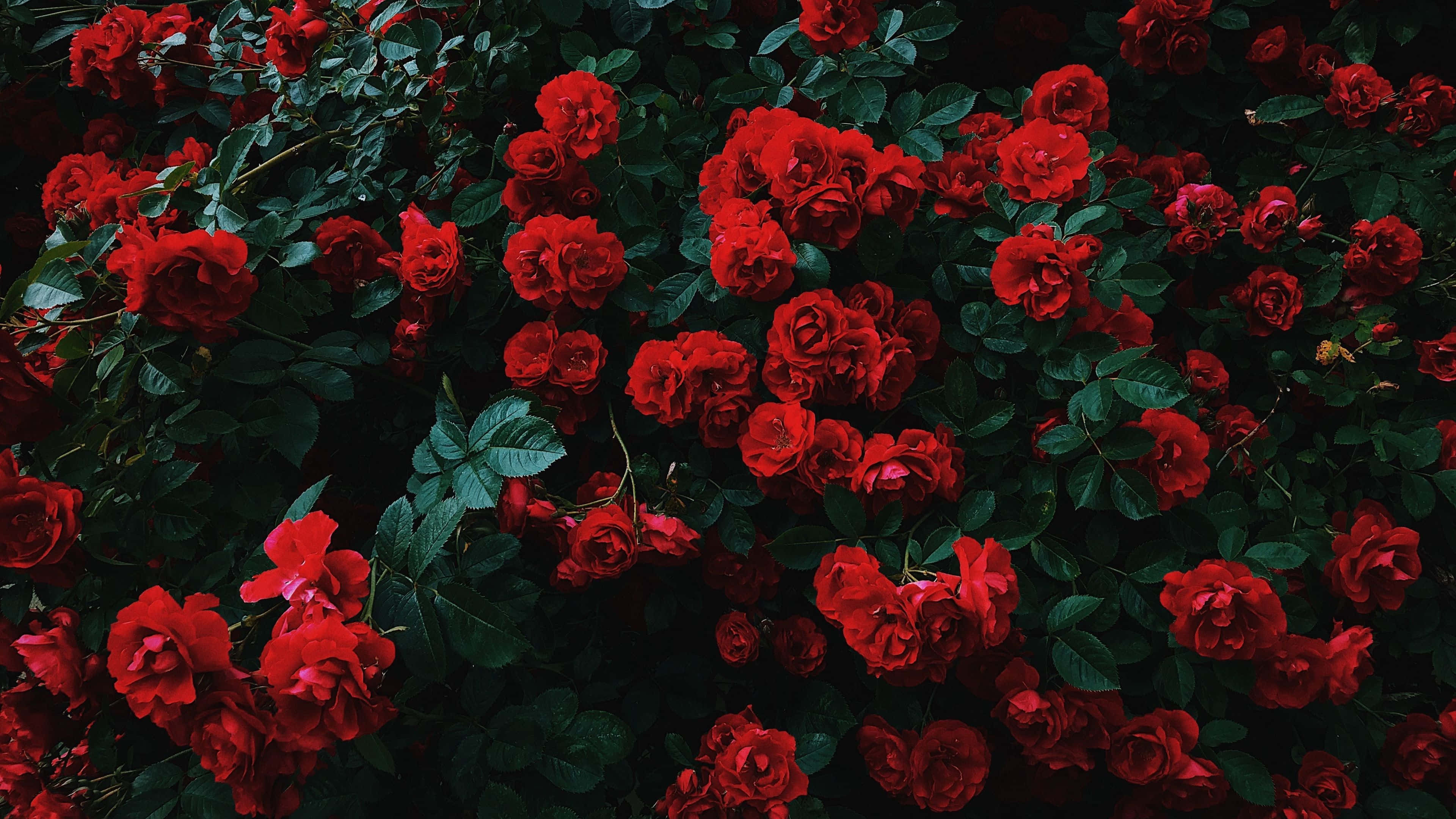 Aesthetic Red Flowers With Dark Leaves Wallpaper -