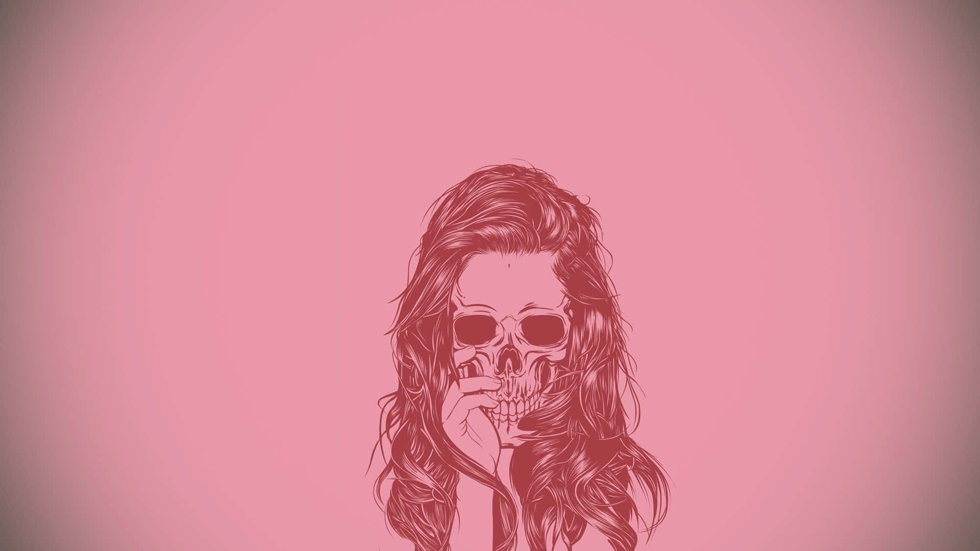 A Drawing Of A Skull With A Pink And Black Background Wallpaper -