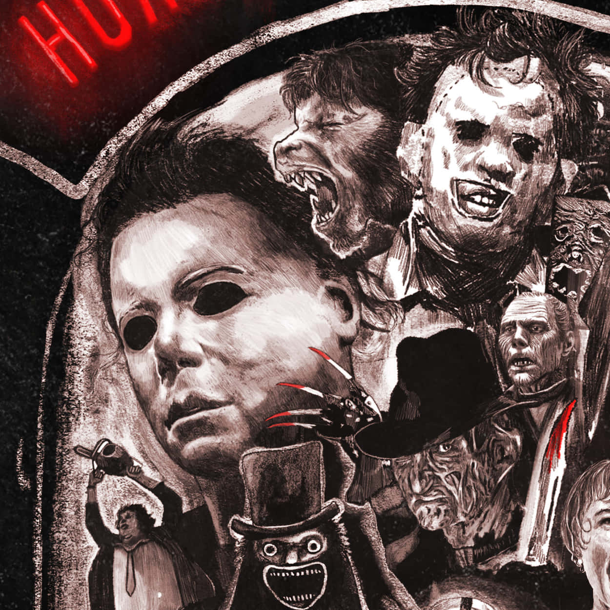 Summoning Nightmares: An Assembly Of Horror Icons Wallpaper -