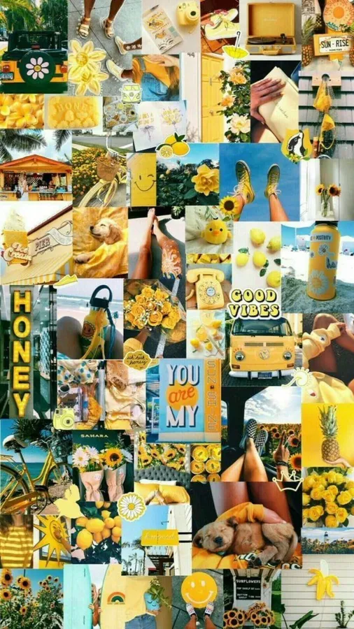 Iphone Collage Of Yellow Images With Sayings Wallpaper -