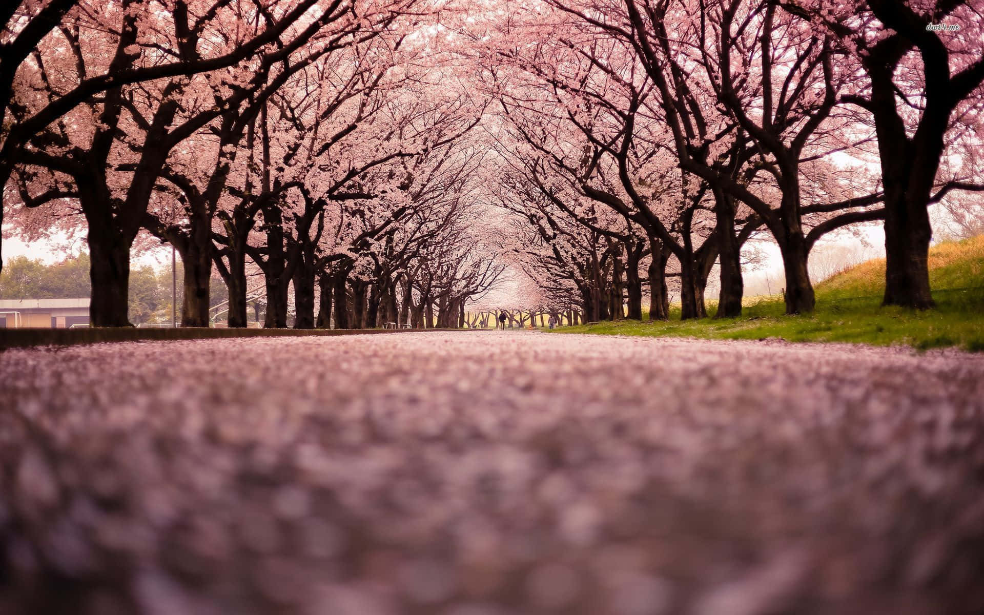 Japanese Pink Trees Road Wallpaper