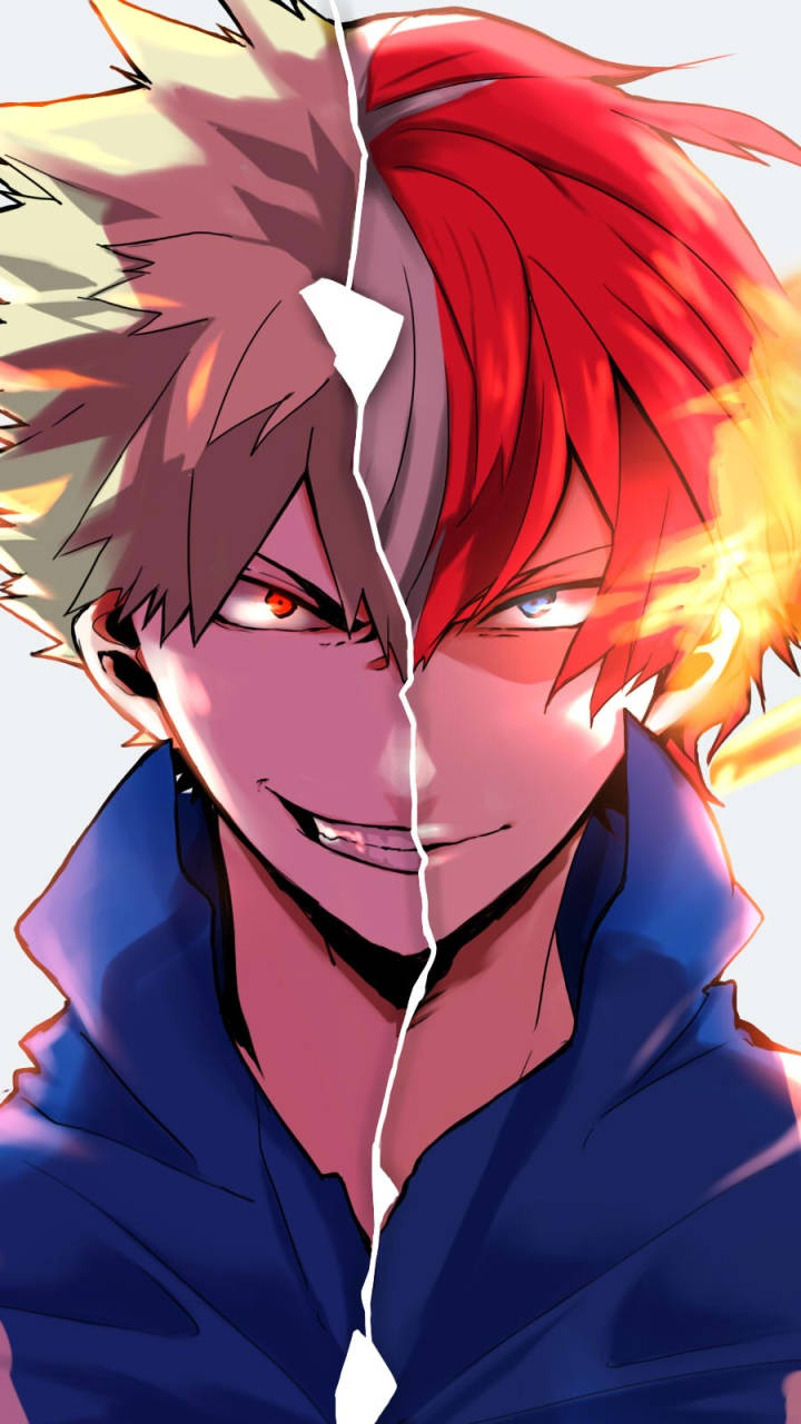 Join The Heroes, Deku, Todoroki, And Bakugo, As They Battle Against Evil Forces. Wallpaper