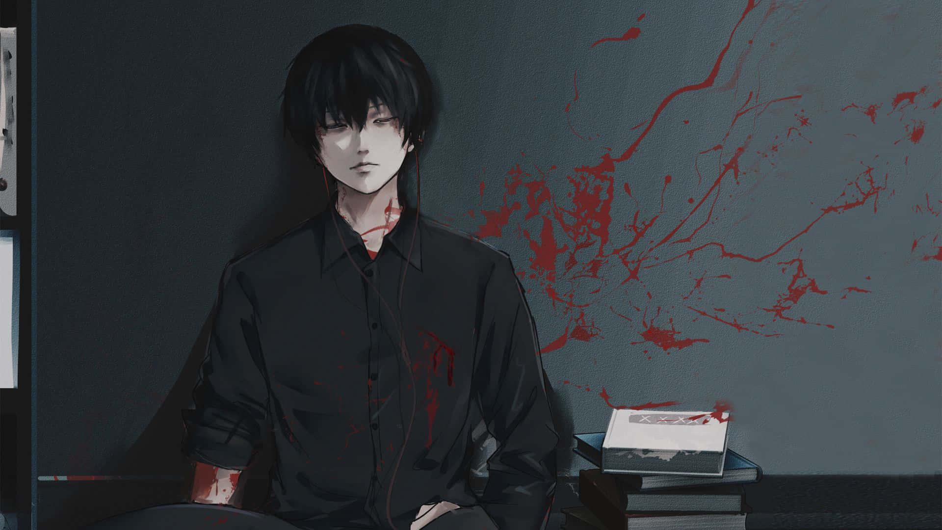 Kaneki Anime Sad With Blood Wallpaper -