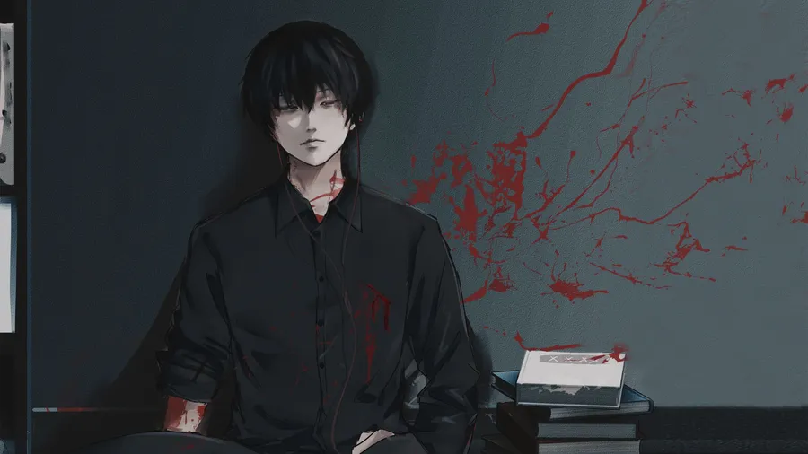 Kaneki Sad Black Hair Aesthetic Wallpaper -