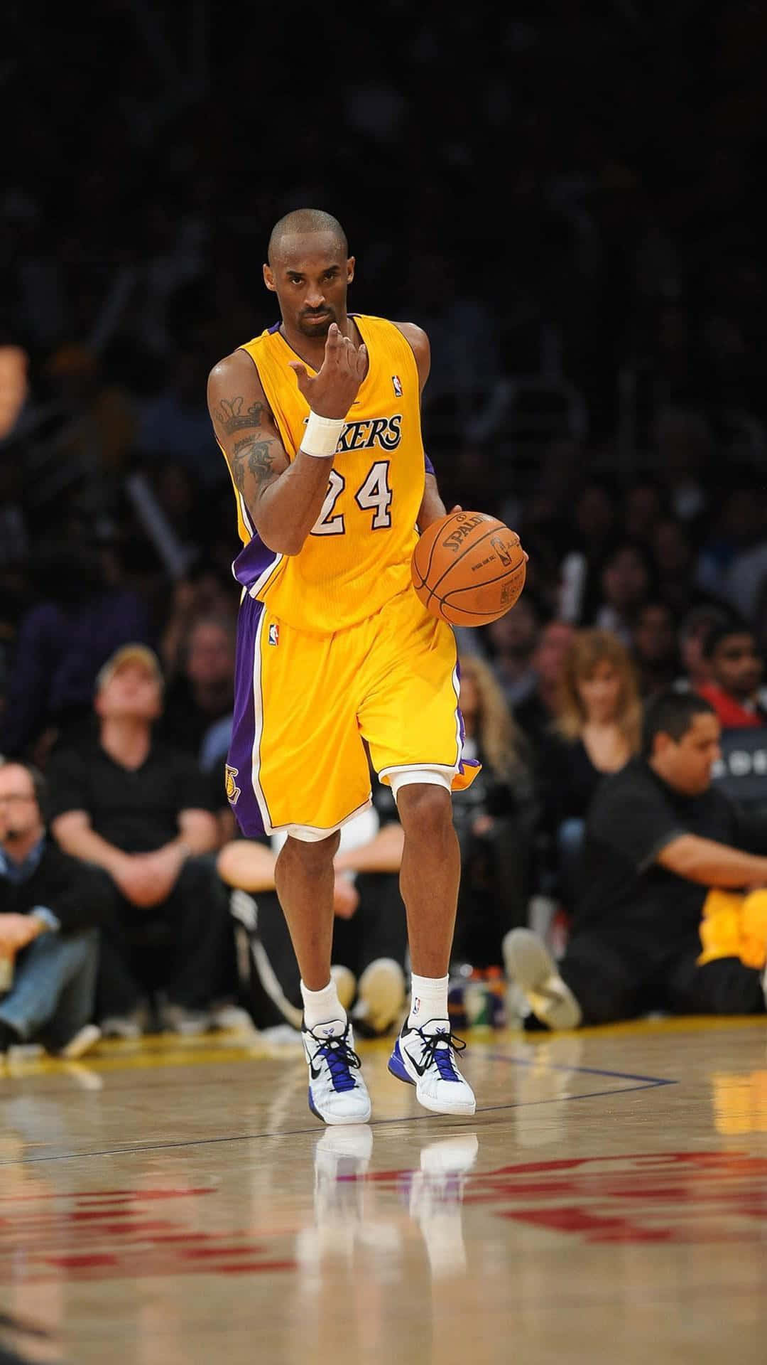 Kobe Bryant Dribbling In Front Of His Fans Wallpaper -