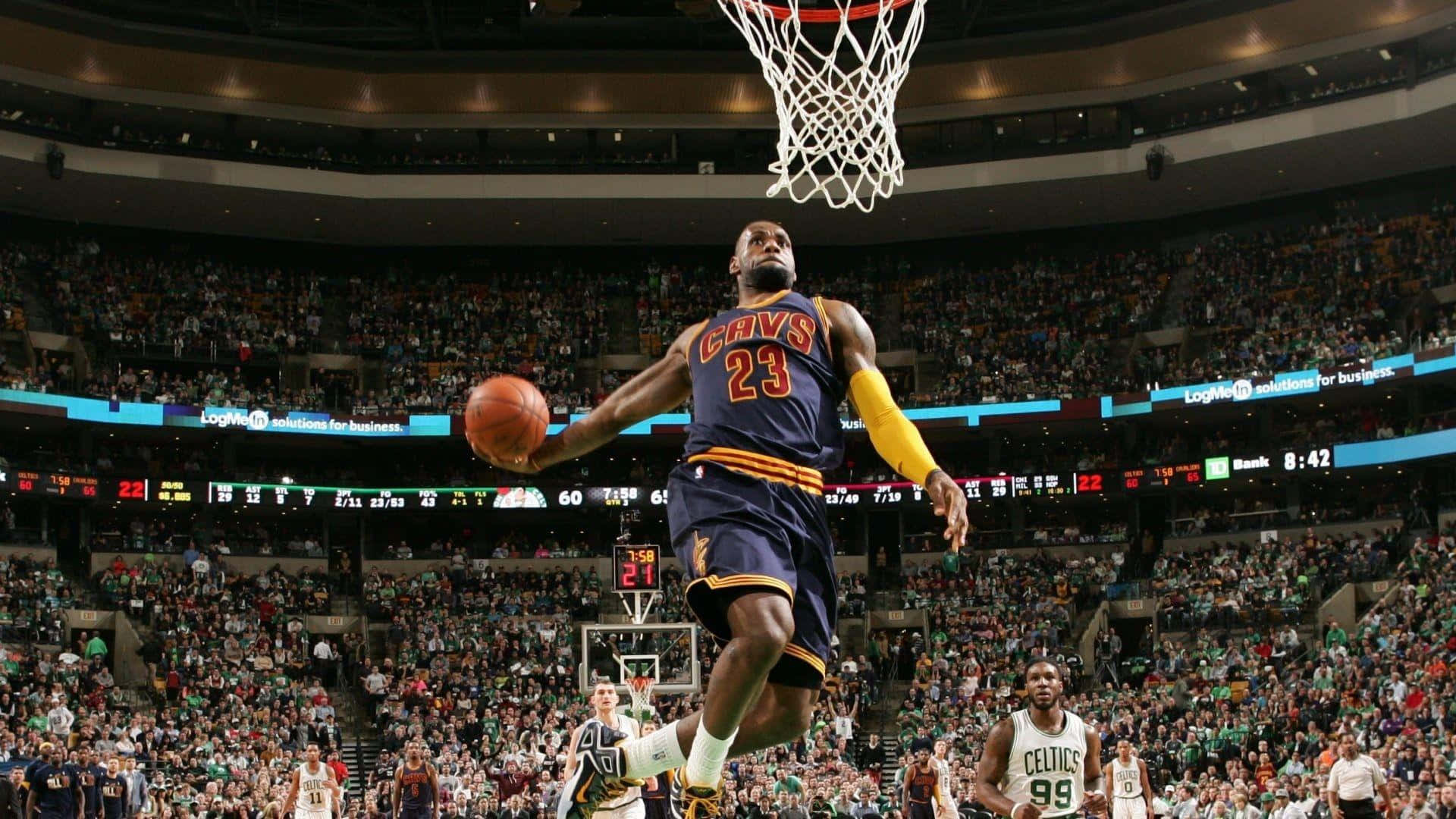 Le Bron James Spectacular Dunkat T D Garden Wallpaper -