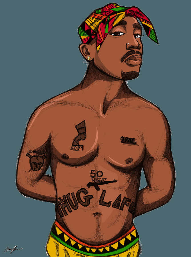 A Cartoon Illustration Of The Iconic Rapper Tupac Shakur Wallpaper -