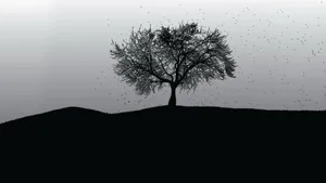 Monochrome Silhouette Of A Majestic Tree Wallpaper -