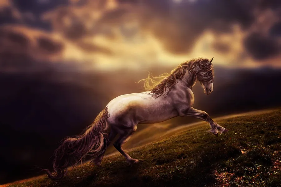 Majestic Horse Galloping Stormy Backdrop Wallpaper