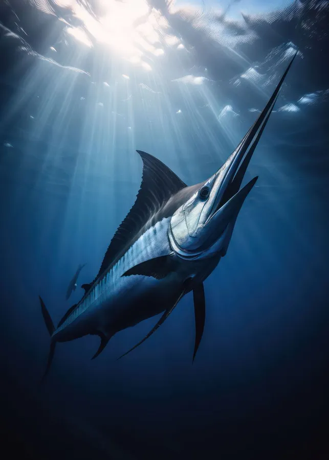 Majestic Swordfish Underwater Sunrays.jpg -