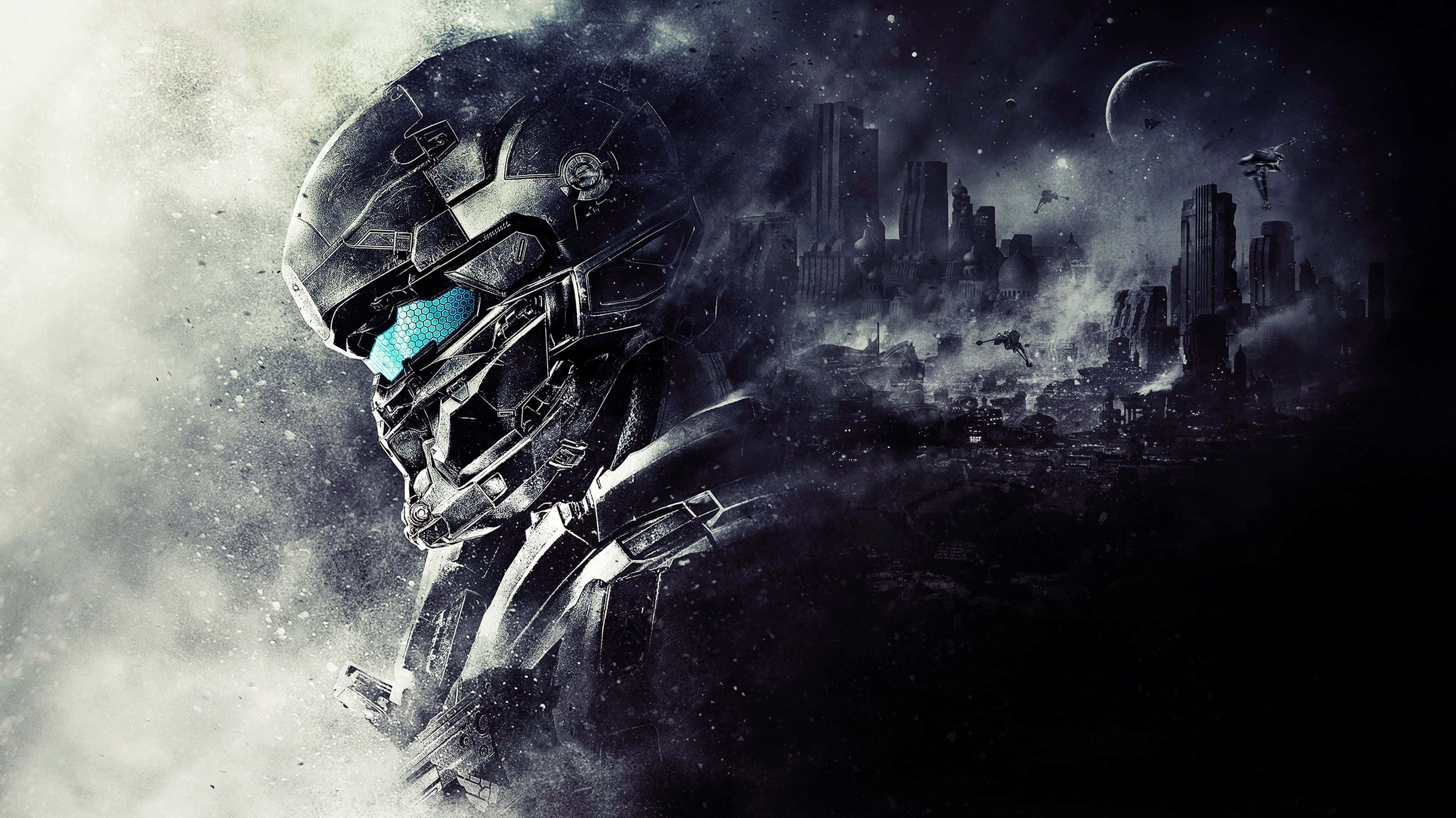 Cool Halo Soldier With Robot Airships Wallpaper -