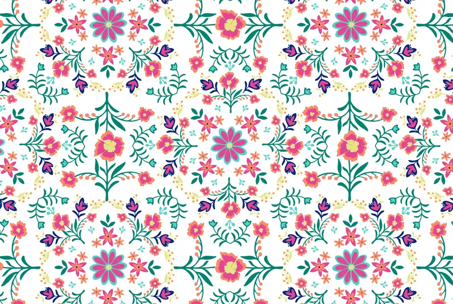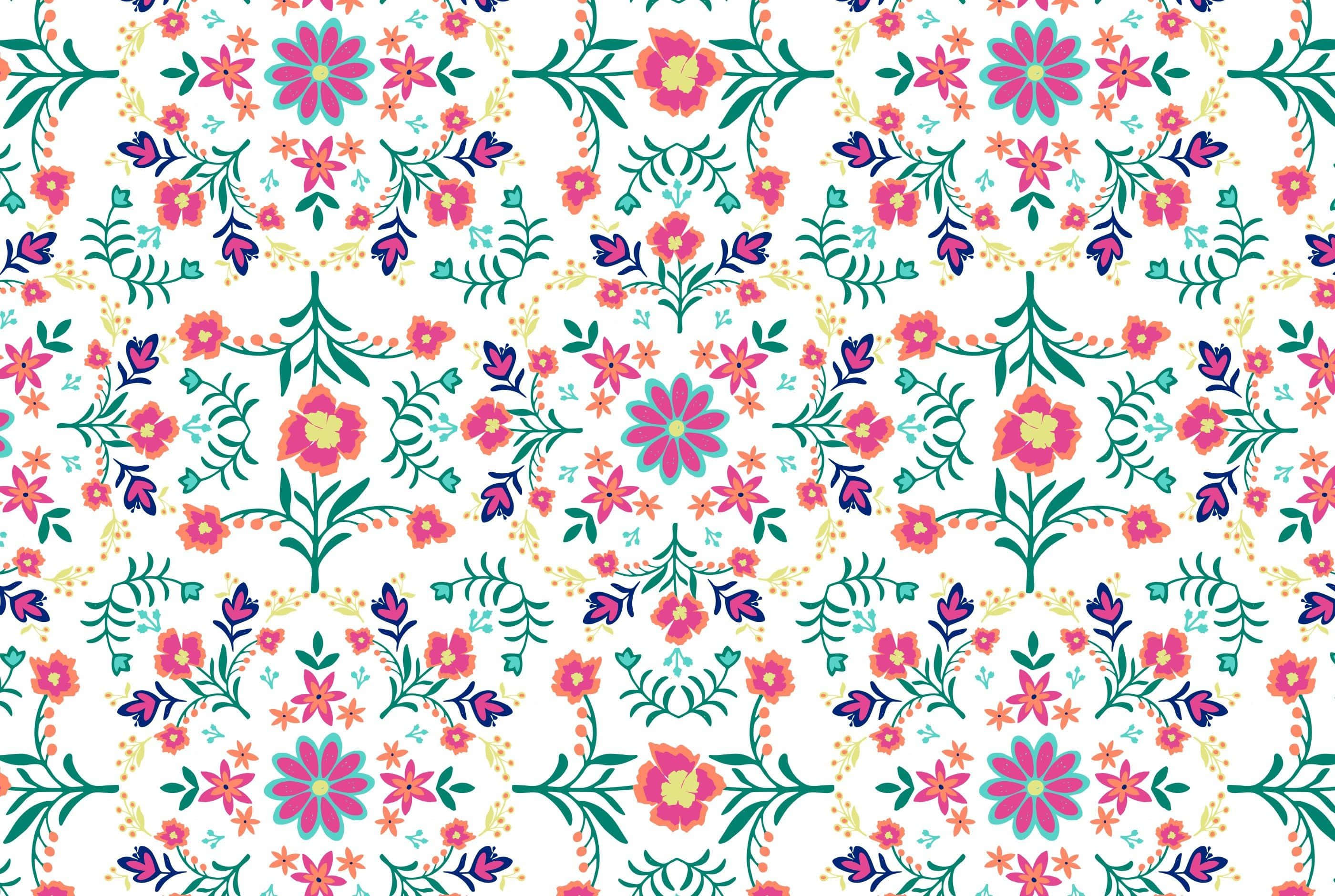A Colorful Embroidered Pattern With Flowers And Leaves Wallpaper -