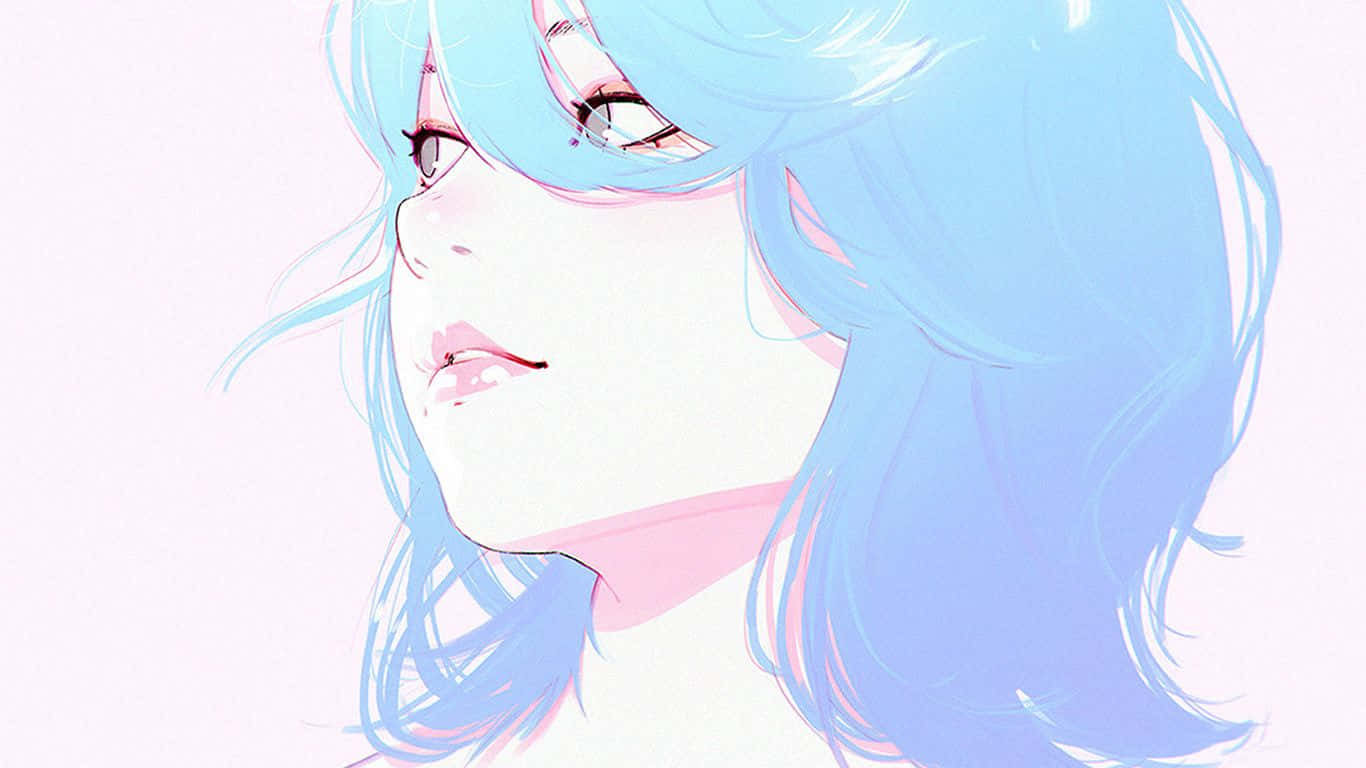 A Woman With Blue Eyes And Purple Hair Is Drawn Wallpaper -