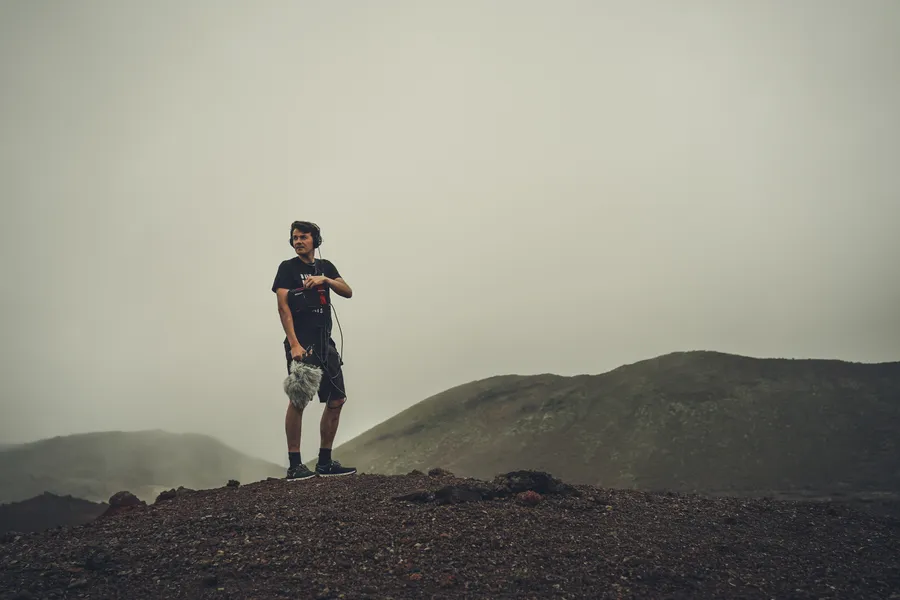 Man In Black T-shirt And Brown Shorts Standing On Brown Rock Wallpaper