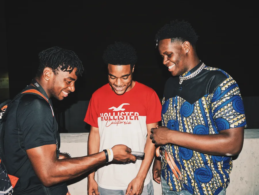 Man In White Crew Neck T-shirt Standing Beside Man In Black Crew Neck T-shirt Wallpaper
